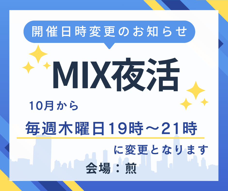 10月より「MIX夜活」の開催日時を以下のとおり変更します。